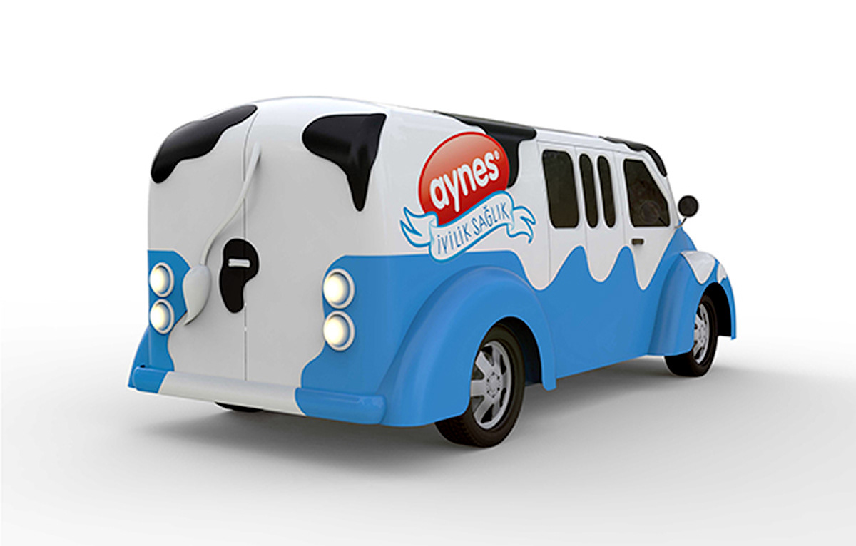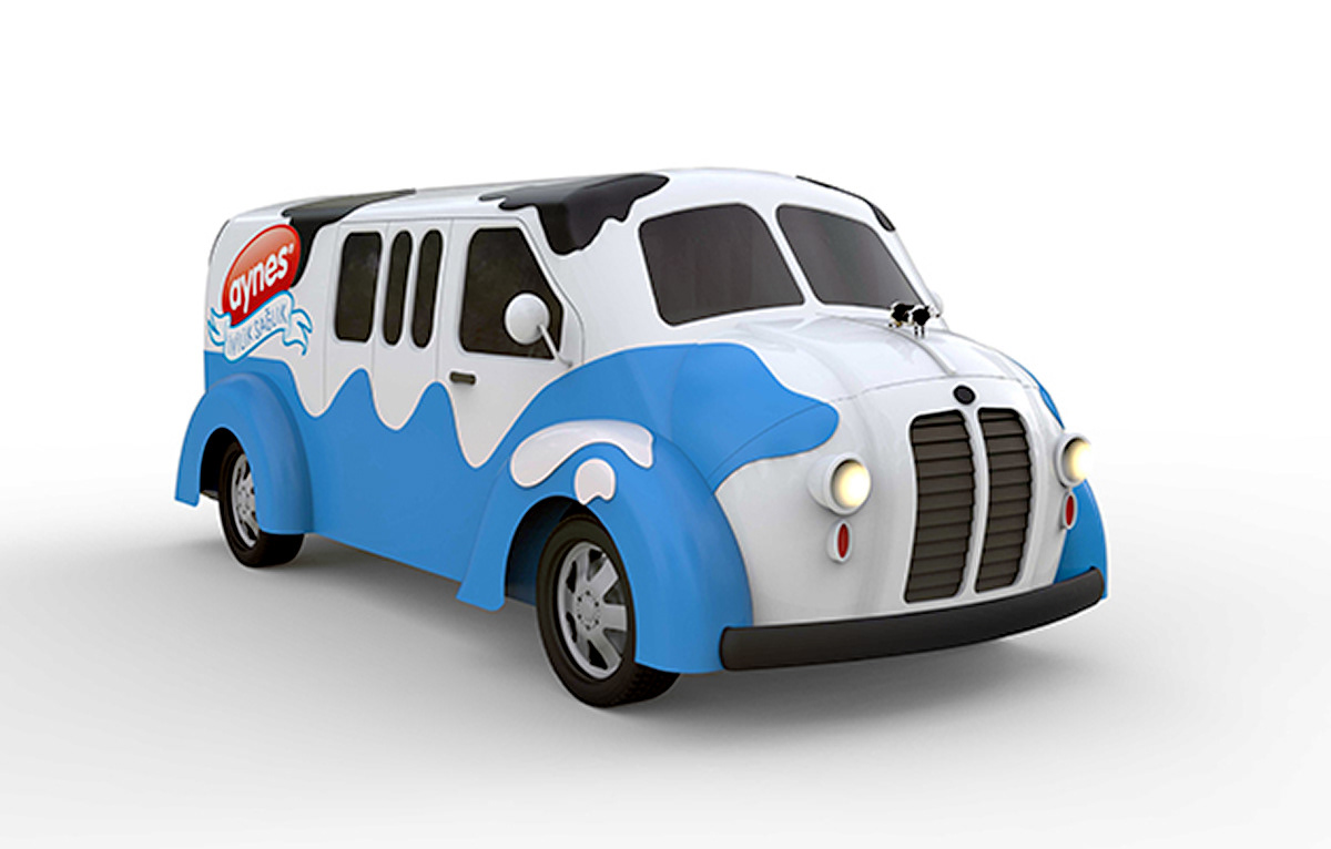 The Cow-Bus was 3D modelled for animation and technical drawings for mockup productions were prepared as well as visual were rendered.